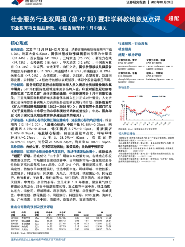 【国信证券】【20230103】社会服务行业双周报(第47期)暨非学科教培意见点评:职业教育再出鼓励新政,中国香港预计1月中通关-16页