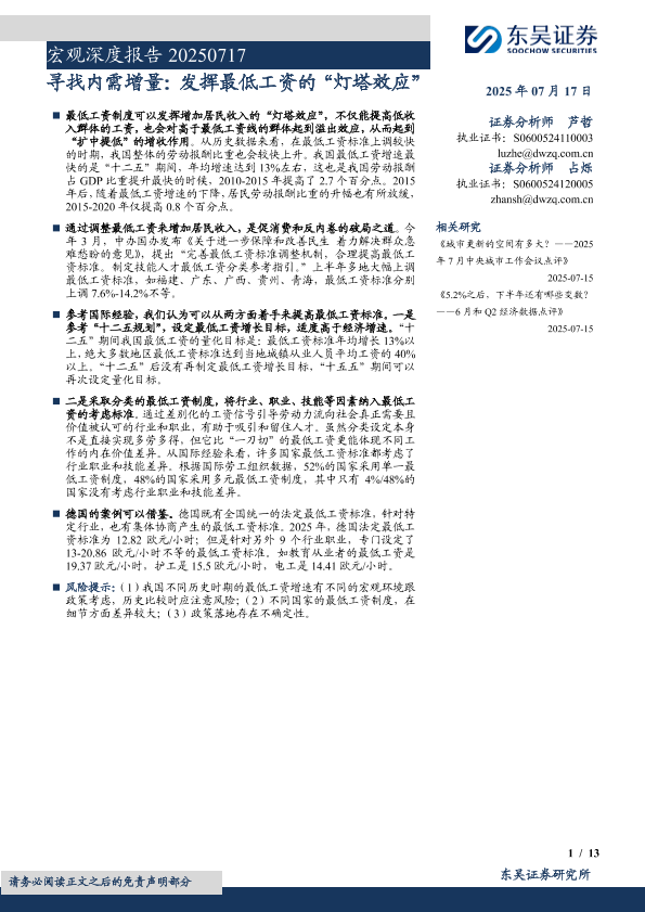 【东吴证券】【20250717】宏观深度报告:寻找内需增量,发挥最低工资的“灯塔效应”-13页