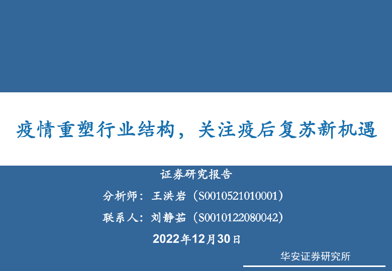 【华安证券】【20221230】社会服务行业:疫情重塑行业结构,关注疫后复苏新机遇-45页