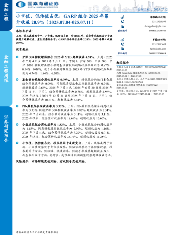 【国泰海通证券】【20250712】小市值、低估值占优,GARP组合2025年累计收益20.9%-11页