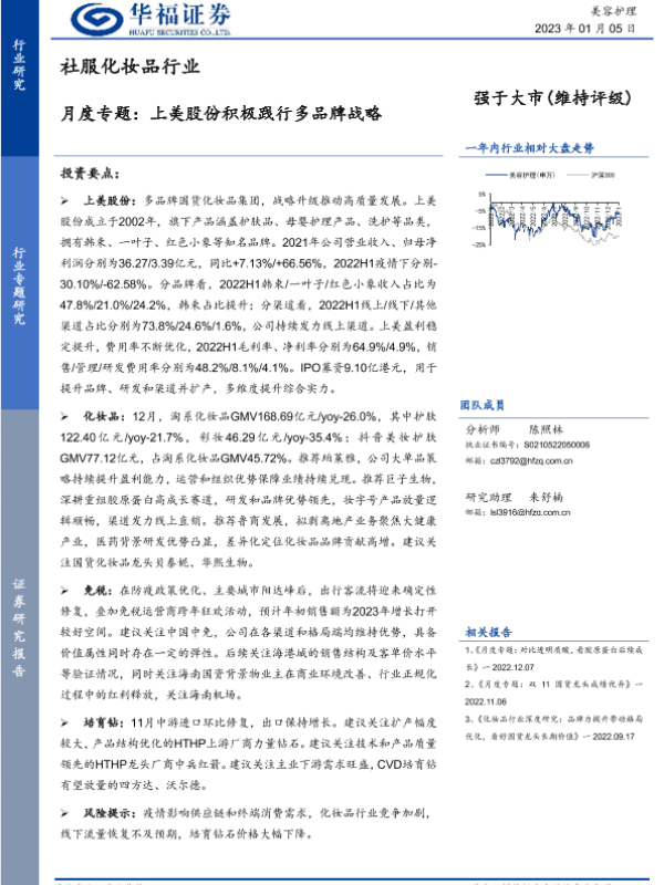 【华福证券】【20230105】社服化妆品行业月度专题:上美股份积极践行多品牌战略-25页