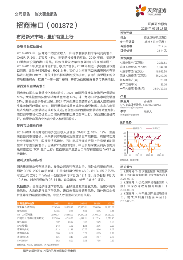 【天风证券】【20250717】招商港口布局新兴市场,量价有望上行-25页