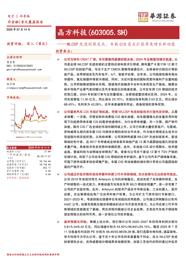 【华源证券】【20250714】晶方科技(603005)WLCSP先进封装龙头,车载CIS需求扩张带来增长新动能-41页