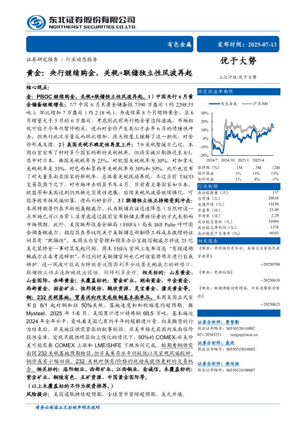 【东北证券】【20250713】黄金:央行继续购金,关税+联储独立性风波再起-11页