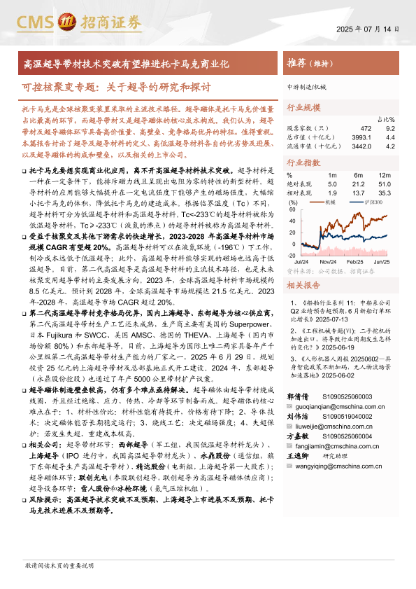 【海通证券】【20250714】机械行业可控核聚变专题:关于超导的研究和探讨-16页