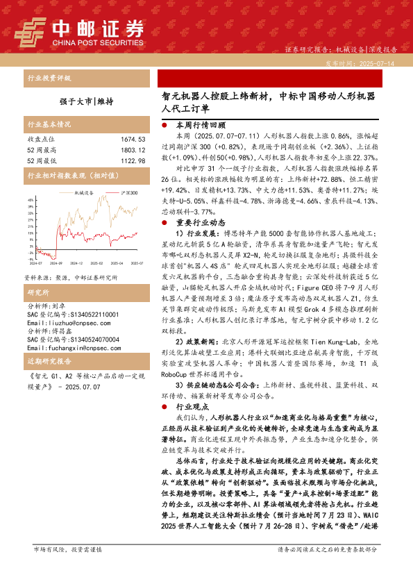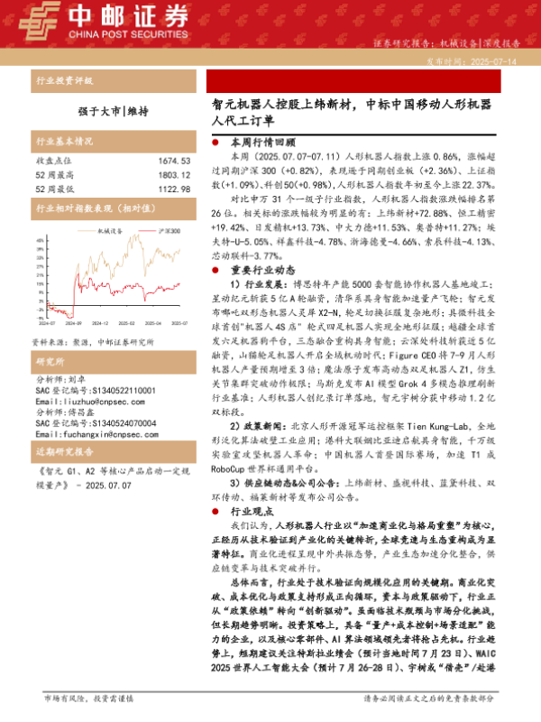 【中邮证券】【20250714】机械设备行业深度报告:智元机器人控股上纬新材,中标中国移动人形机器人代工订单-15页