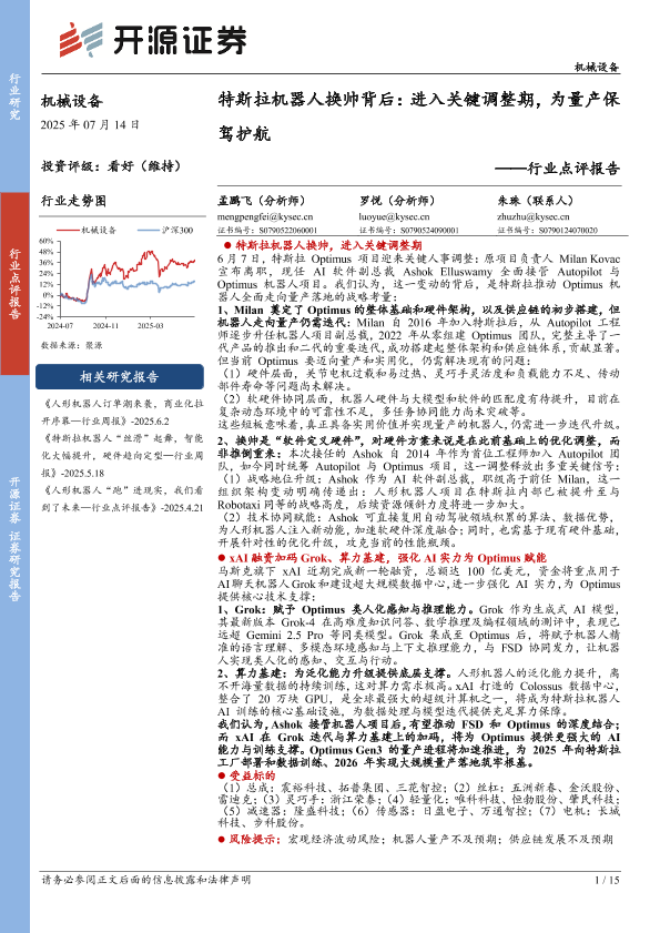 【开源证券】【20250714】机械设备行业点评报告:特斯拉机器人换帅背后,进入关键调整期,为量产保驾护航-15页