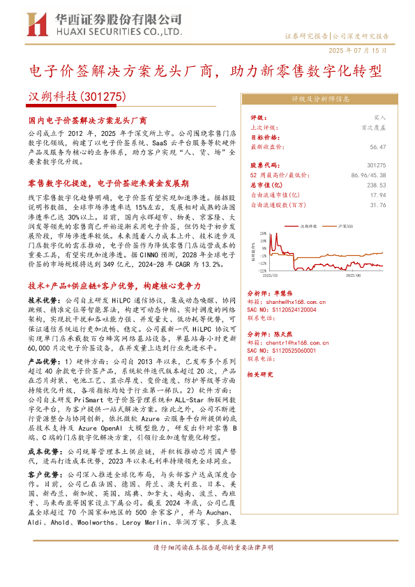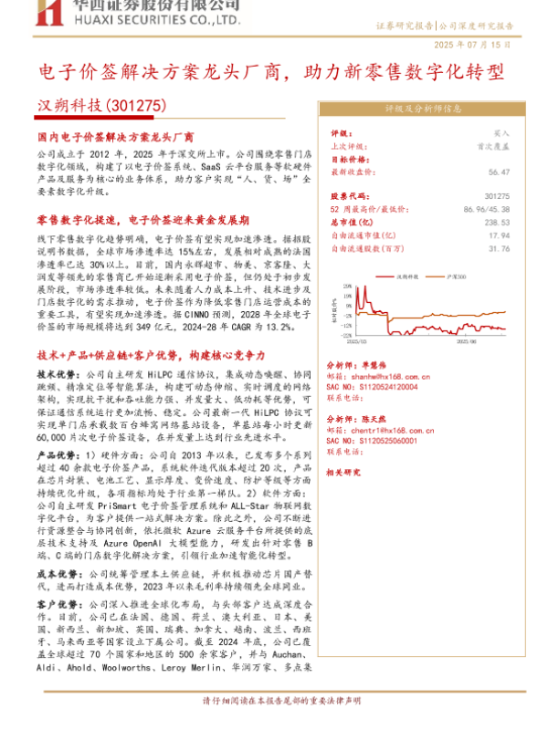 【华西证券】【20250715】汉朔科技(301275)电子价签解决方案龙头厂商,助力新零售数字化转型-24页