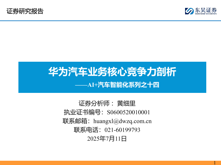 【东吴证券】【20250711】汽车行业AI+汽车智能化系列之十四:华为汽车业务核心竞争力剖析-54页