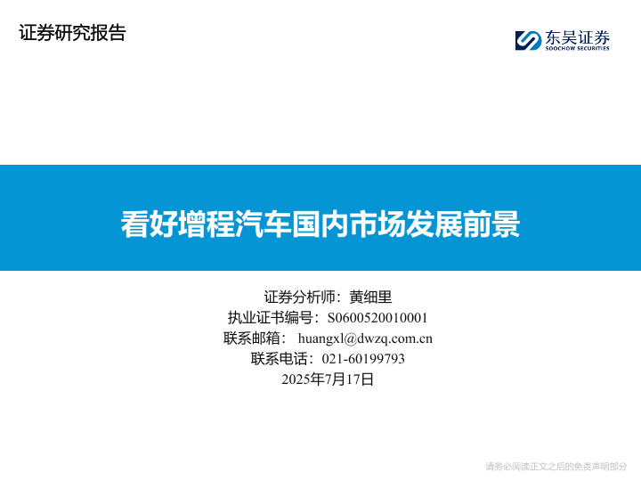 【东吴证券】【20250717】看好增程汽车国内市场发展前景-50页