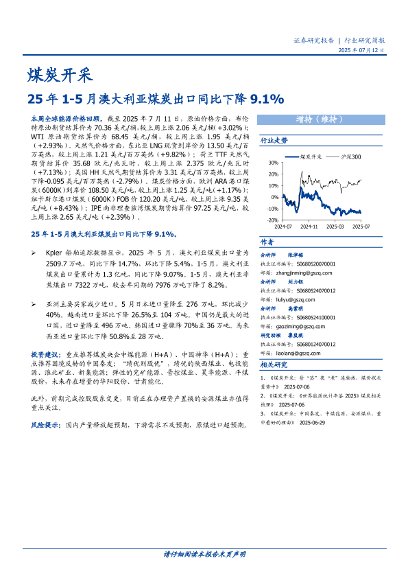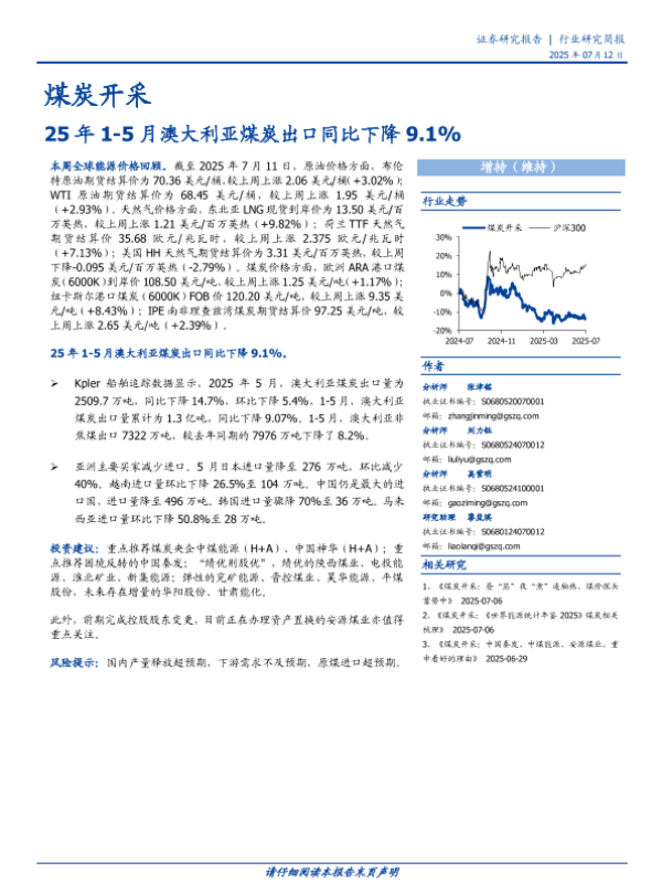 【国盛证券】【20250712】煤炭开采行业研究简报:25年1-5月澳大利亚煤炭出口同比下降9.1%-13页