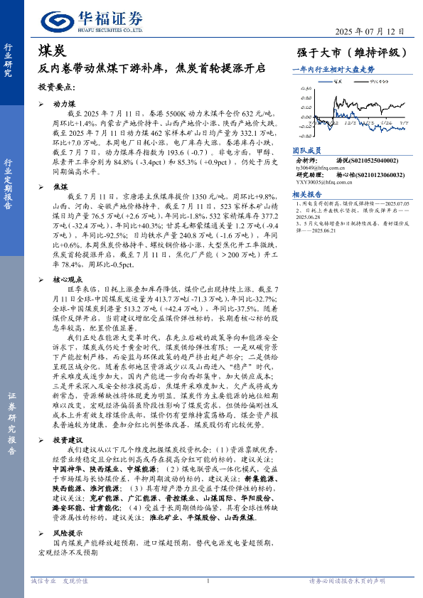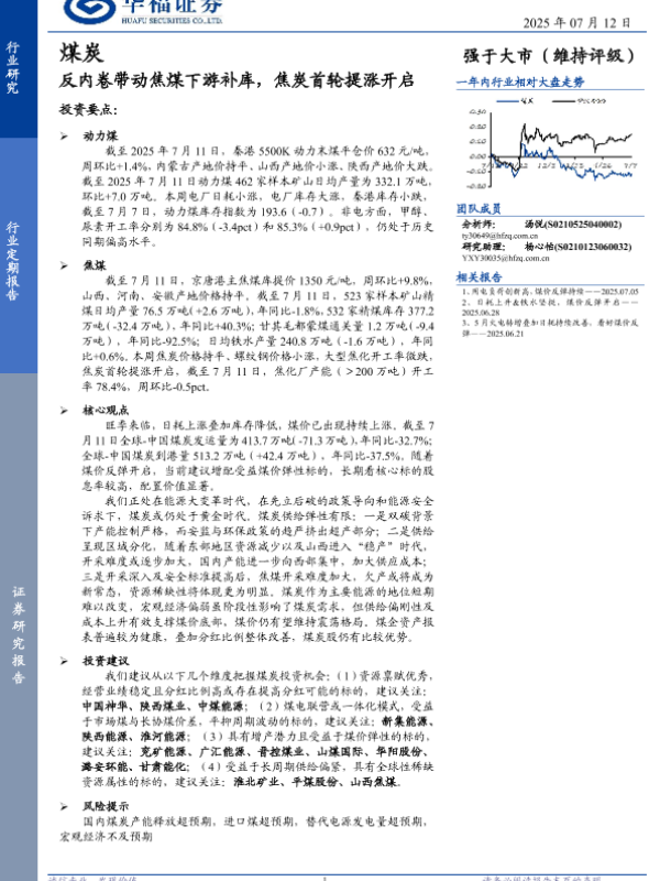 【华福证券】【20250712】煤炭行业定期_process报告:反内卷带动焦煤下游补库,焦炭首轮提涨开启-29页