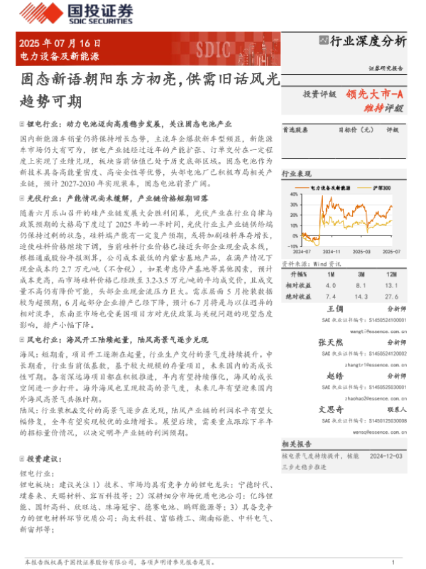 【国投证券】【20250716】电力设备及新能源行业:固态新语朝阳东方初亮,供需旧话风光趋势可期-29页