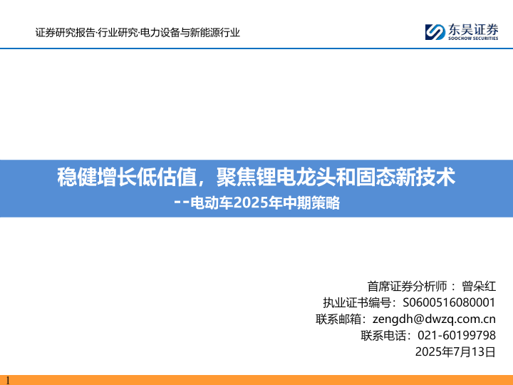 【东吴证券】【20250713】电力设备与新能源行业电动车2025年中期策略:稳健增长低估值,聚焦锂电龙头和固态新技术-106页