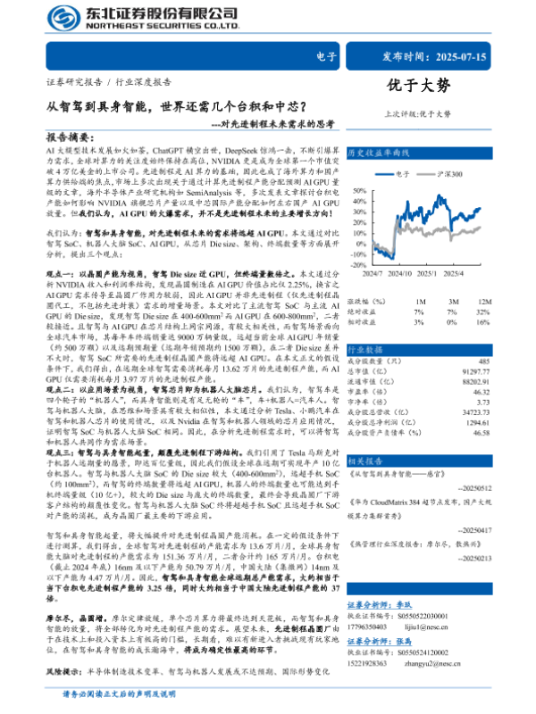 先进制程 智驾芯片 电子行业 AI GPU 具身智能