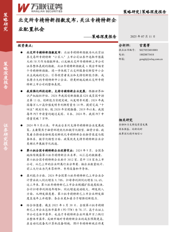 【万联证券】【20250711】北交所专精特新指数发布,关注专精特新企业配置机会-23页