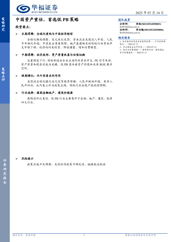 【华福证券】【20250714】策略点评:中国资产重估,首选低PB策略-11页