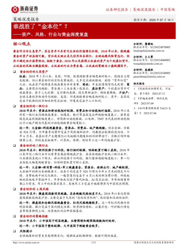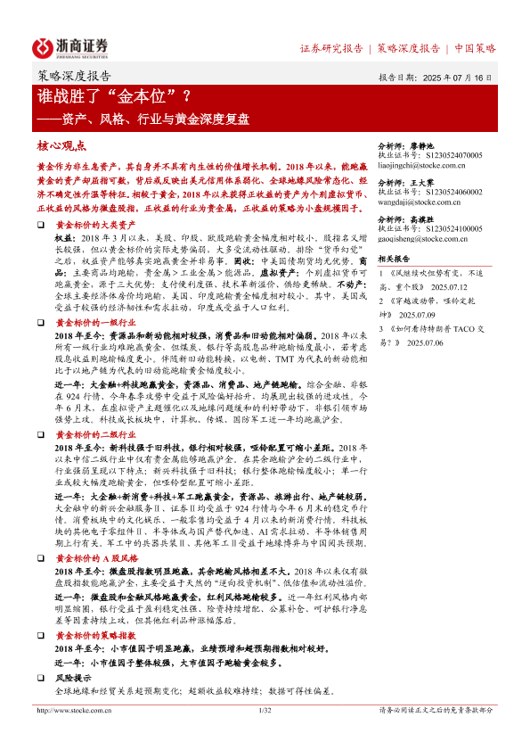 【浙商证券】【20250716】策略深度报告:资产、风格、行业与黄金深度复盘-谁战胜了“金本位”?-32页