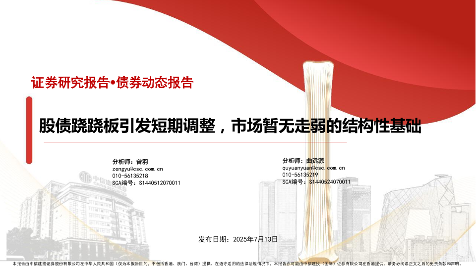 【中信建投证券】【20250713】股债跷跷板引发短期调整,市场暂无走弱的结构性基础-25页