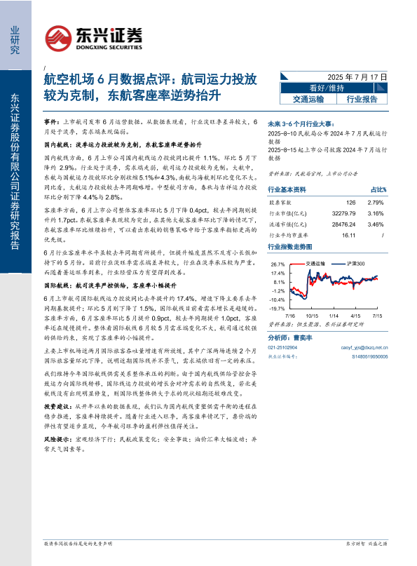 【东兴证券】【20250717】航空机场行业6月数据点评:航司运力投放较为克制,东航客座率逆势抬升-12页