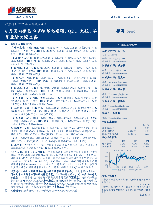 【华创证券】【20250716】航空行业2025年6月数据点评-10页