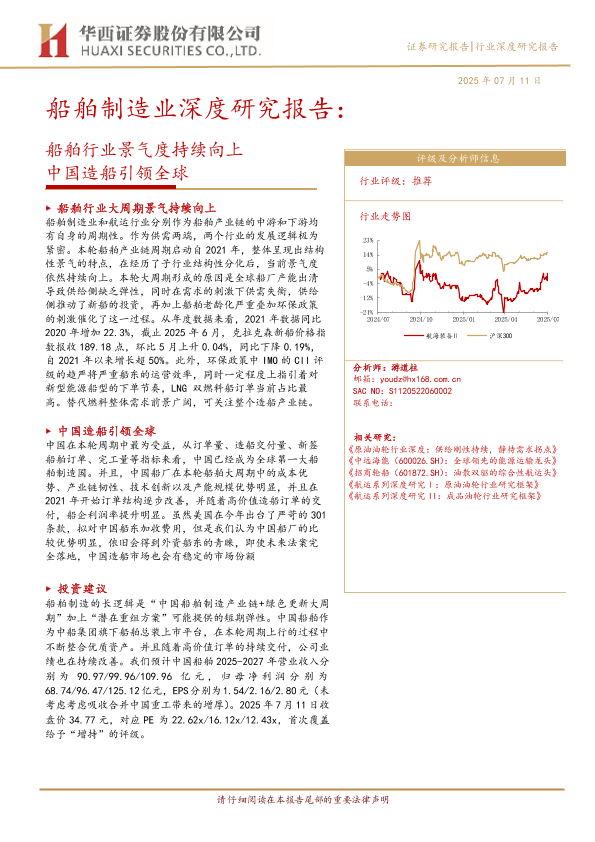【华西证券】【20250711】船舶制造行业深度研究报告:船舶行业景气度持续向上,中国造船引领全球-37页
