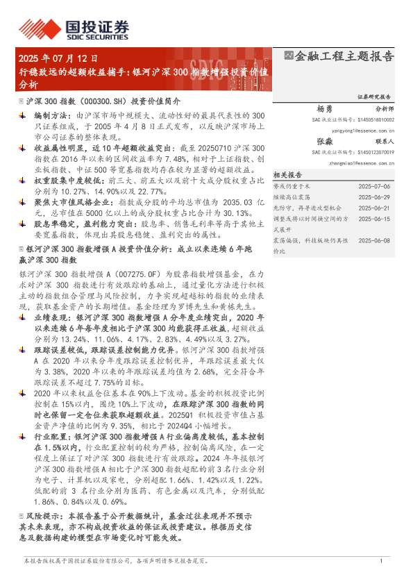 【国投证券】【20250712】行稳致远的超额收益捕手:银河沪深300指数增强投资价值分析-14页