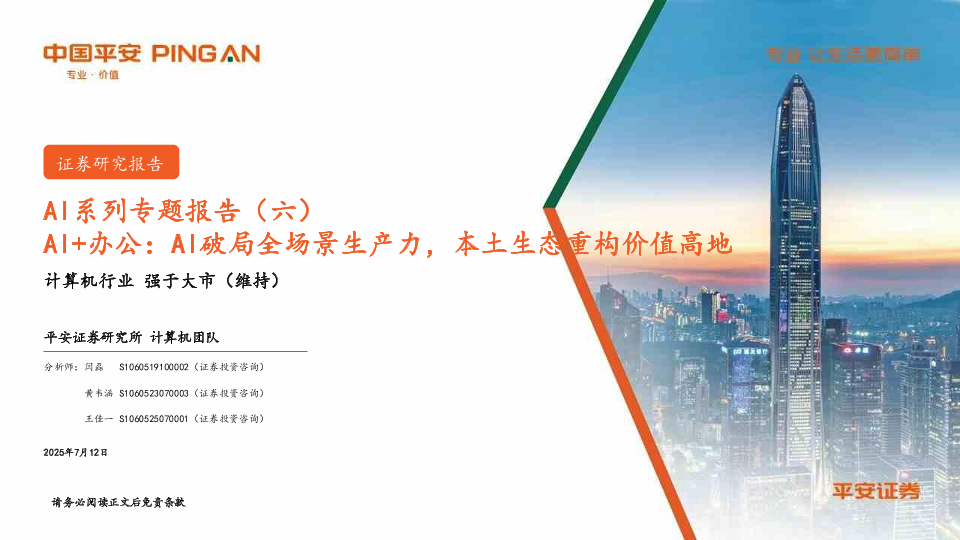 【平安证券】【20250712】AI+办公:AI破局全场景生产力,本土生态重构价值高地-30页
