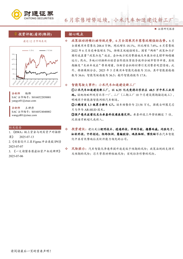 政策影响 小米汽车 智能驾驶 零售市场 汽车行业