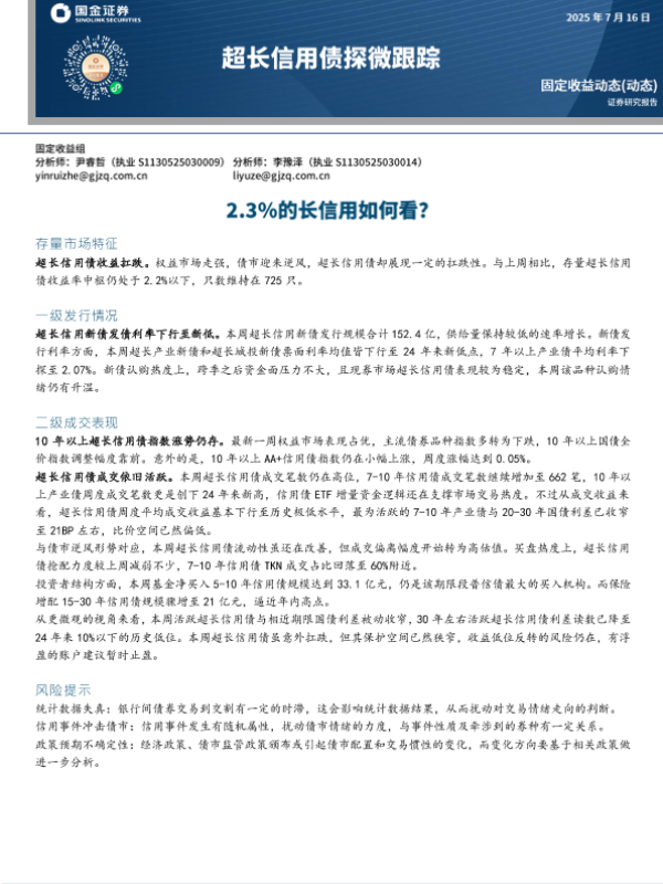 【国金证券】【20240716】超长信用债探微跟踪:2.3%的长信用如何看?-11页