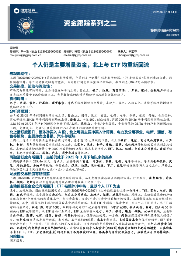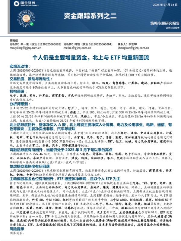 【国金证券】【20250714】资金跟踪系列之二:个人仍是主要增量资金,北上与ETF均重新回流-35页