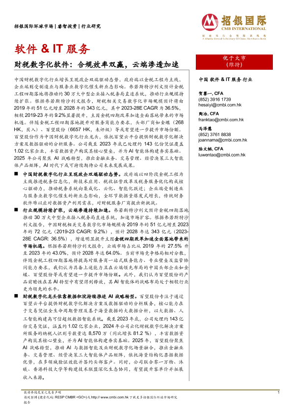 【招银国际】【20250716】软件&IT服务行业:财税数字化软件,合规效率双赢,云端渗透加速-15页