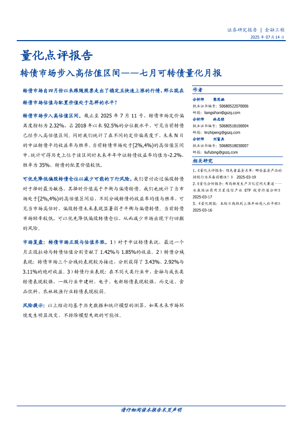 【国盛证券】【20250714】转债市场步入高估值区间——七月可转债量化月报-15页