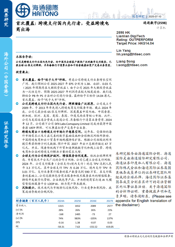 【海通国际】【20250709】连连数字首次覆盖:跨境支付国内先行者,受益跨境电商出海-23页