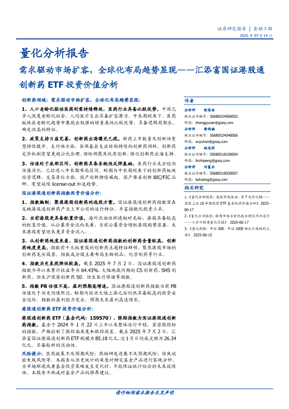 【国盛证券】【20250714】量化分析报告:需求驱动市场扩容,全球化布局趋势显现——汇添富国证港股通创新药ETF投资价值分析-24页