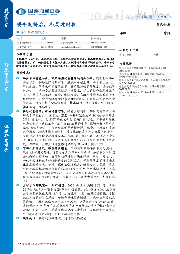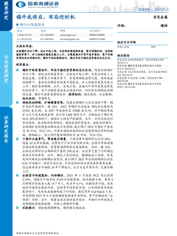 【国泰海通证券】【20250716】锡行业深度报告:锡牛或将启,布局迎时机-23页