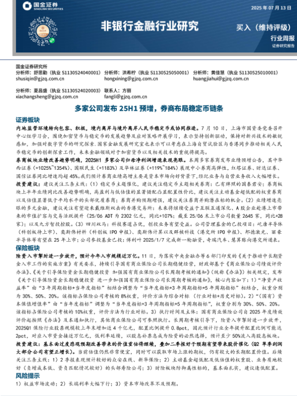 券商 资本市场 业绩预增 稳定币 保险资金