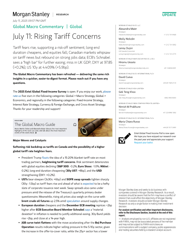【Morgan Stanley】【20250711】Global Macro Commentary July 11 Rising Tariff Concerns-14页
