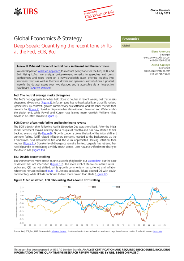 【UBS AG London Branch】【20250710】Deep Speak Quantifying the recent tone shifts at the Fed, ECB, BoJ-10页