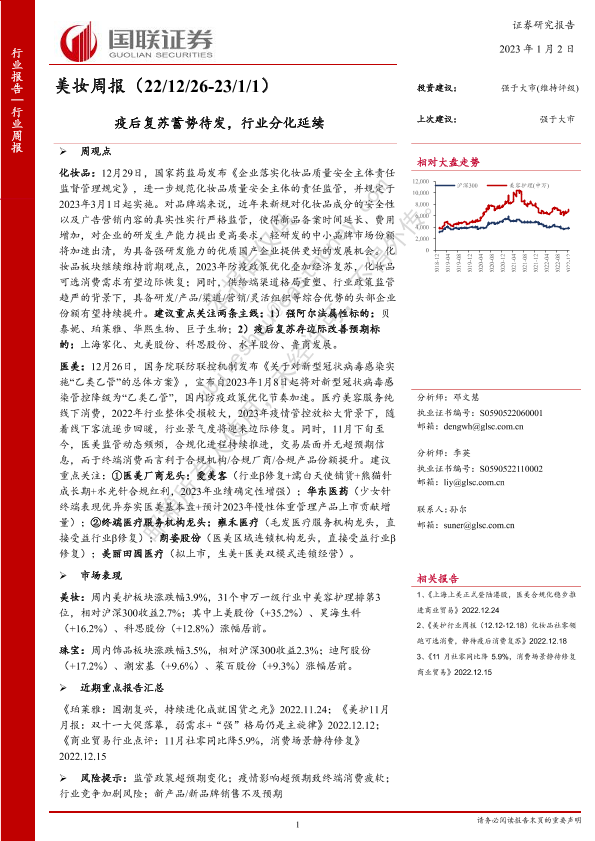【国联证券】【20230102】美妆周报:疫后复苏蓄势待发,行业分化延续-14页
