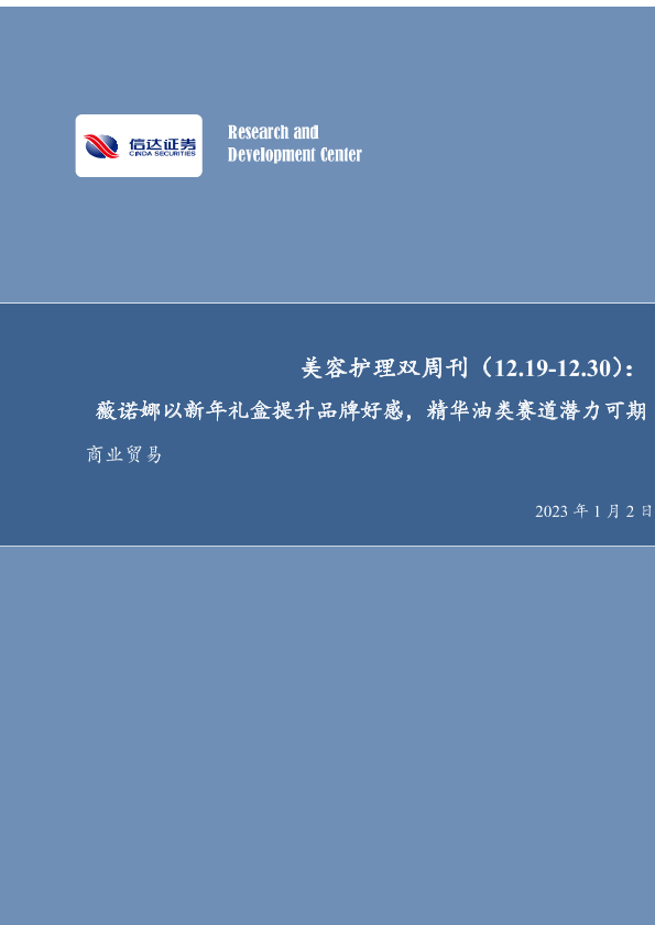 【信达证券】【20230102】美容护理双周刊:薇诺娜以新年礼盒提升品牌好感,精华油类赛道潜力可期-20页