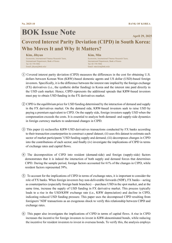 【Bank of Korea】【20250429】Covered Interest Parity Deviation(CIPD) in South Korea Who Moves It and Why It Matters?-16页