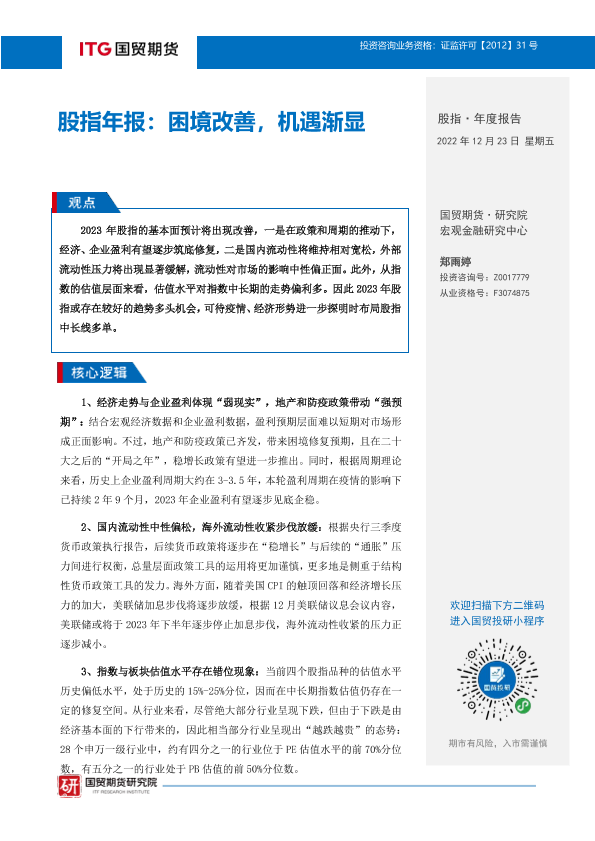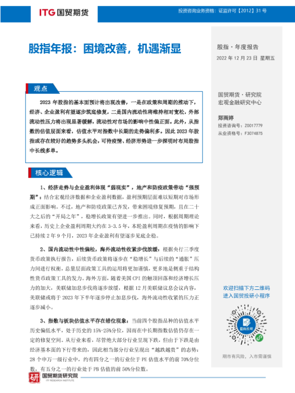 【国贸期货】【20221223】股指年报:困境改善,机遇渐显-17页