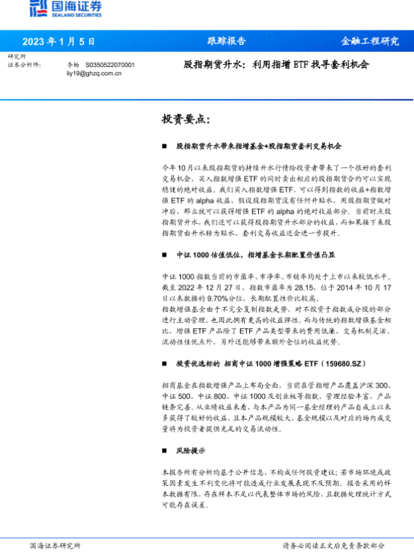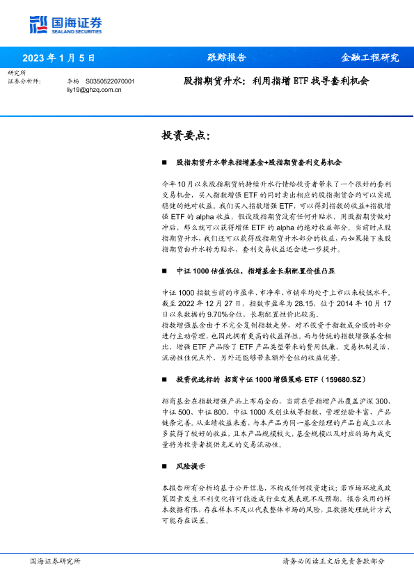 【国海证券】【20230105】股指期货升水:利用指增ETF找寻套利机会-21页