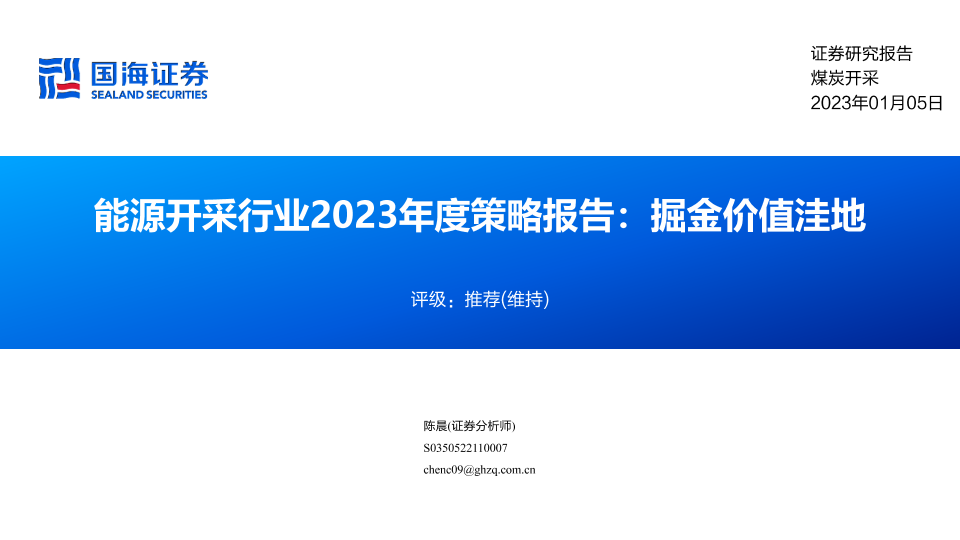 【国海证券】【20230105】能源开采行业2023年度策略报告:掘金价值洼地-40页