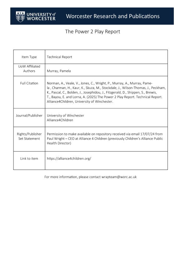 【Alliance4Children&University of Winchester】【2025】The Power 2 Play Report-55页