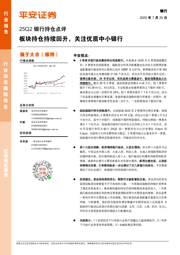【平安证券】【20250725】25Q2银行业持仓点评:板块持仓持续回升,关注优质中小银行-10页