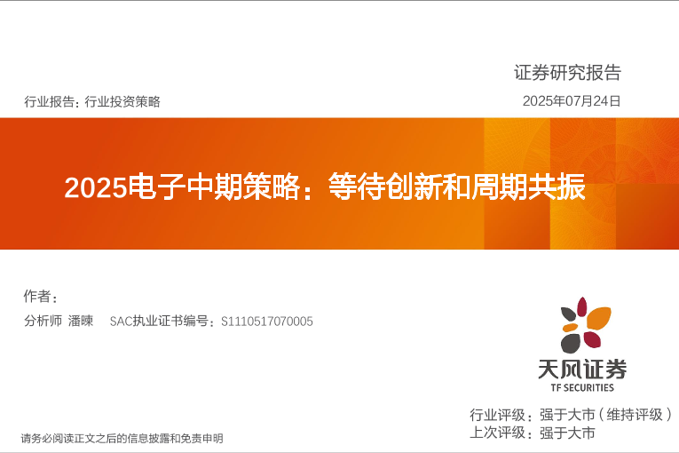 【天风证券】【20250724】2025电子行业中期策略:等待创新和周期共振-64页