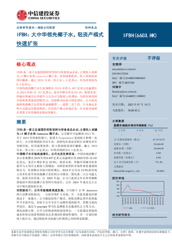 【中信建投证券】【20250718】IFBH:大中华领先椰子水,轻资产模式快速扩张-26页