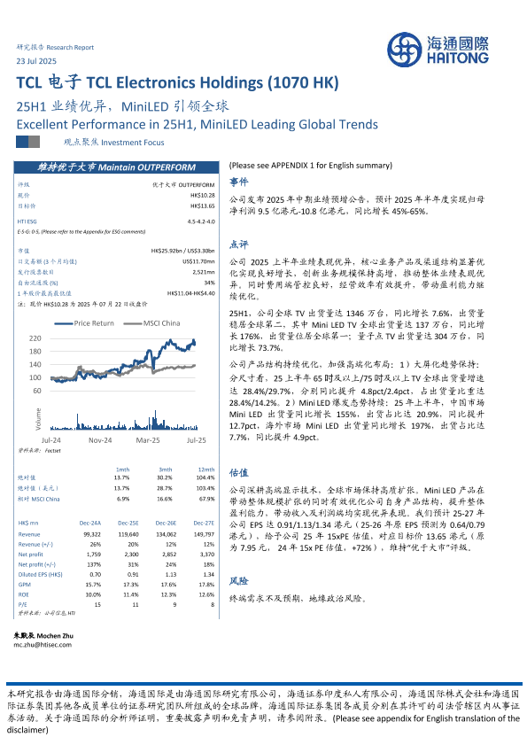 【海通国际】【20250723】TCL电子25H1业绩优异,MiniLED引领全球-12页